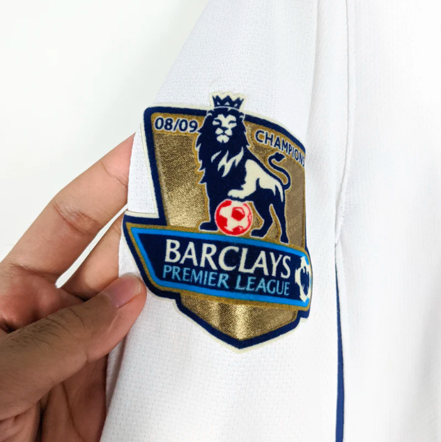 Iconic Manchester United 2008/09 Away Shirt featuring Cristiano Ronaldo’s legendary #7. Bold royal blue design with black accents, and official Premier League name set. Worn during Ronaldo’s final season at the club — a true collector’s piece from a historic campaign.